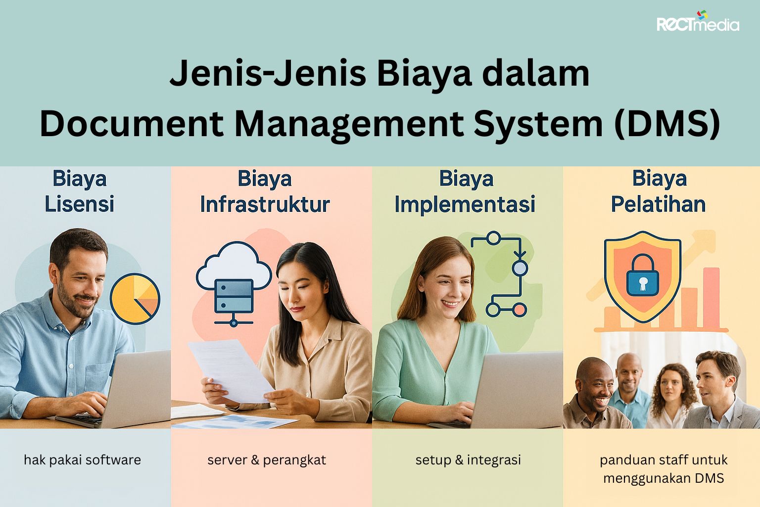 Jika perusahaan Anda ingin mengelola dokumen dengan lebih efisien tanpa membebani anggaran, RECTmedia siap membantu dengan jasa pembuatan dan pengelolaan Document Management System. Kami membantu perusahaan menyesuaikan sistem sesuai kebutuhan sehingga biaya document management system bisa lebih terkontrol, sekaligus memberikan manfaat nyata seperti digitalisasi dokumen yang cepat, workflow otomatis, integrasi dengan sistem yang sudah ada, dan keamanan data yang terjamin.